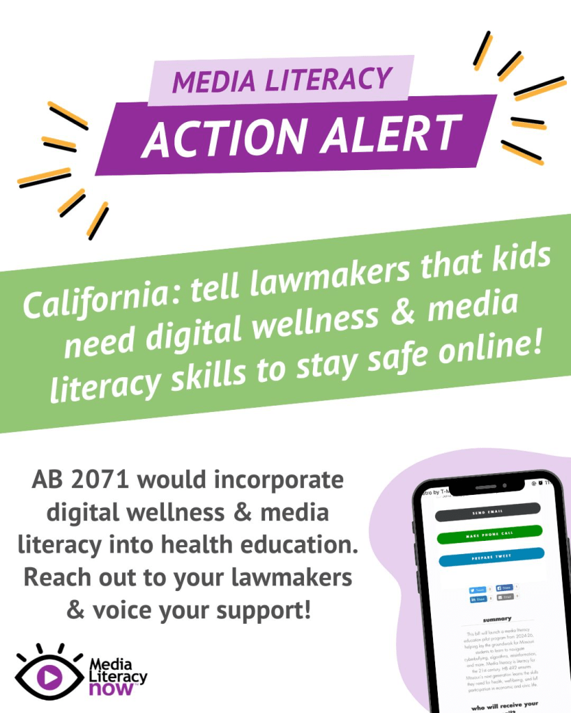 Media Literacy Now’s press release on the introduction of AB 2071. Click to read.